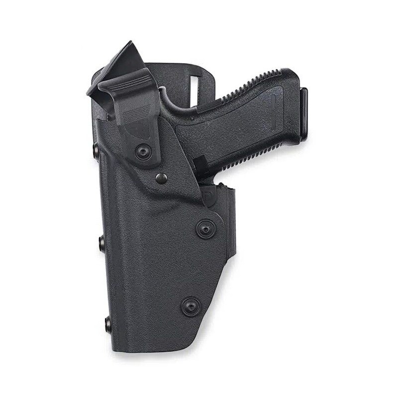 CARACTÉRISTIQUES Double système de rétention de l’arme Rétention passive Rétention mécanique active Rétention réglable par vis Multi-armes Excellente résistance à la déchirure, torsion, chocs et variations climatique Rail de guidage Déflecteur anti-arrachement Compatible ceinturon 50mm Livré avec un passant port médium #9840BL9 COMPATIBLE AVEC : CZ : 75 P-07 Glock : 17 (jusqu’à génération 5) et 22 (jusqu’à génération 4) Heckler & Koch : USP compact HS-Produckt : XDM SIG Sauer : SIG PRO 2022, SIG PRO, P220-P226 Smith & Wesson : MP9